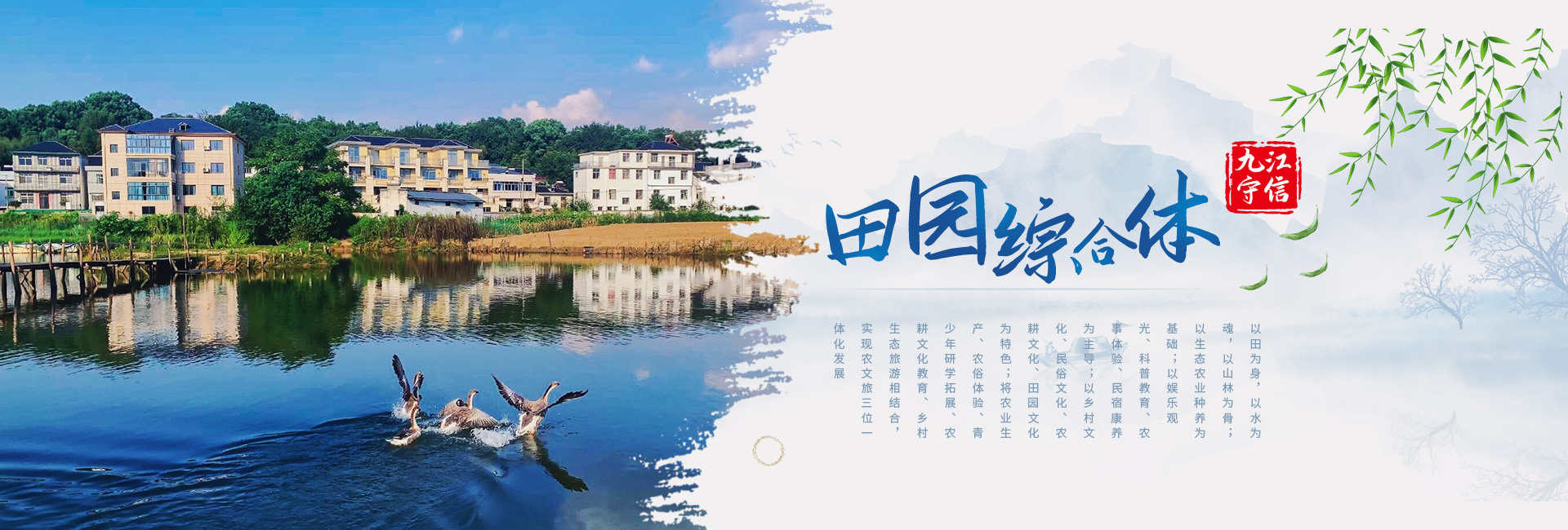 九江守信田園綜合體以田為身,以水為魂,以山林為骨;以生態(tài)農(nóng)業(yè)種養(yǎng)為基礎(chǔ);以?shī)蕵酚^光、科普教育、農(nóng)事體驗(yàn)、民宿康養(yǎng)為主;以鄉(xiāng)村文化、民俗文化、農(nóng)耕文化、田園文化為特色;將農(nóng)業(yè)生產(chǎn)、農(nóng)俗體驗(yàn)、青少年研學(xué)拓展、農(nóng)耕文化教育、鄉(xiāng)村生態(tài)旅游相結(jié)合,實(shí)現(xiàn)農(nóng)文旅三位一體化發(fā)展,成為生態(tài)性、主題性、復(fù)合型農(nóng)莊公園模式...